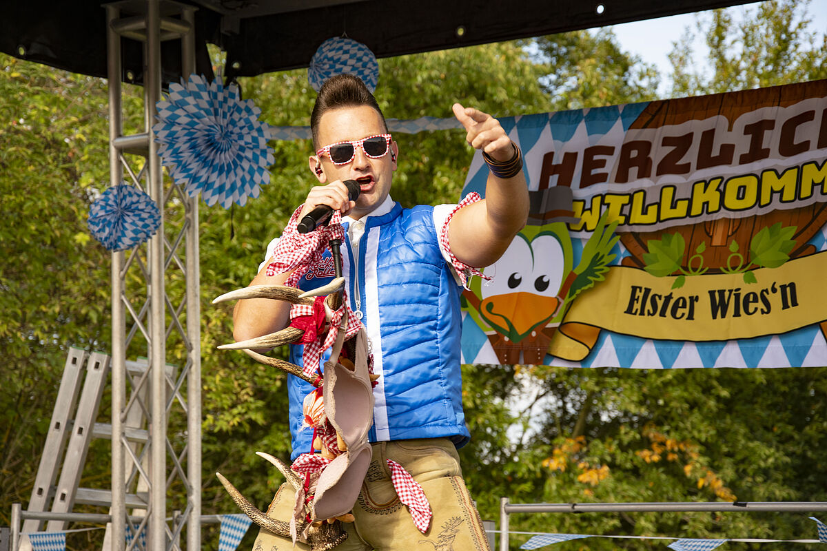 Nach einem stürmischen Aufbautag zuvor wurden wir am Veranstaltungstag mit überraschend heiterem Wetter beschenkt – die Sonne strahlte vom Himmel, und kein einziger Regentropfen fiel auf die „Elster Wies’n“.