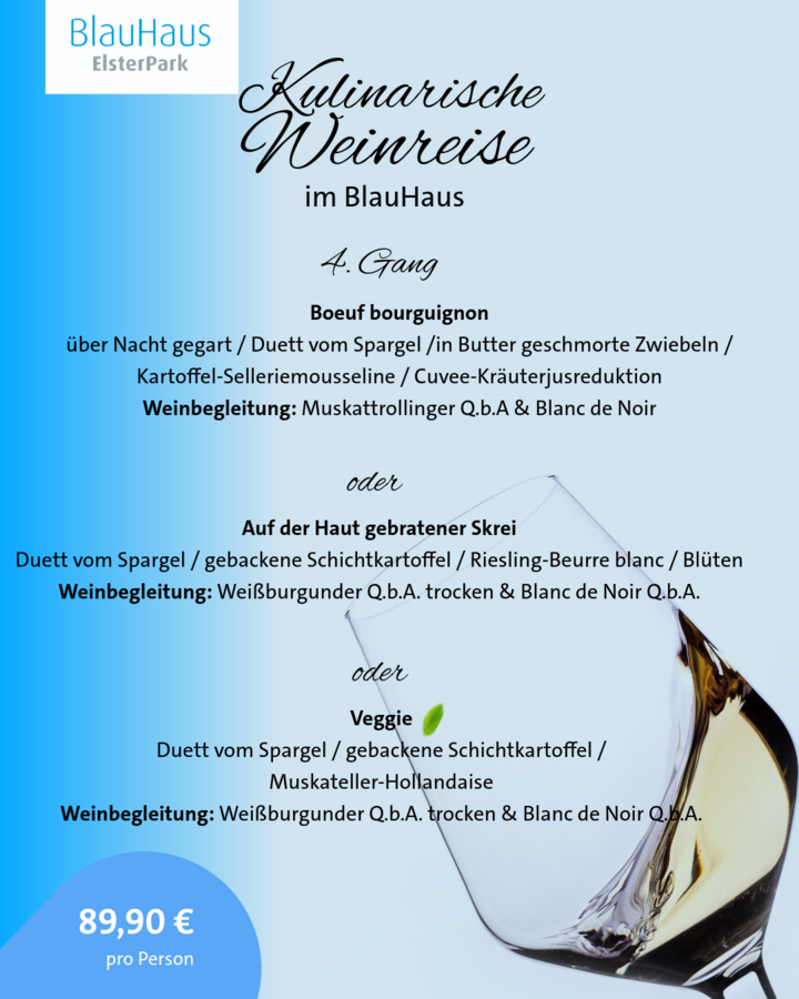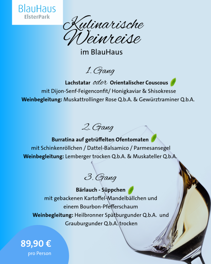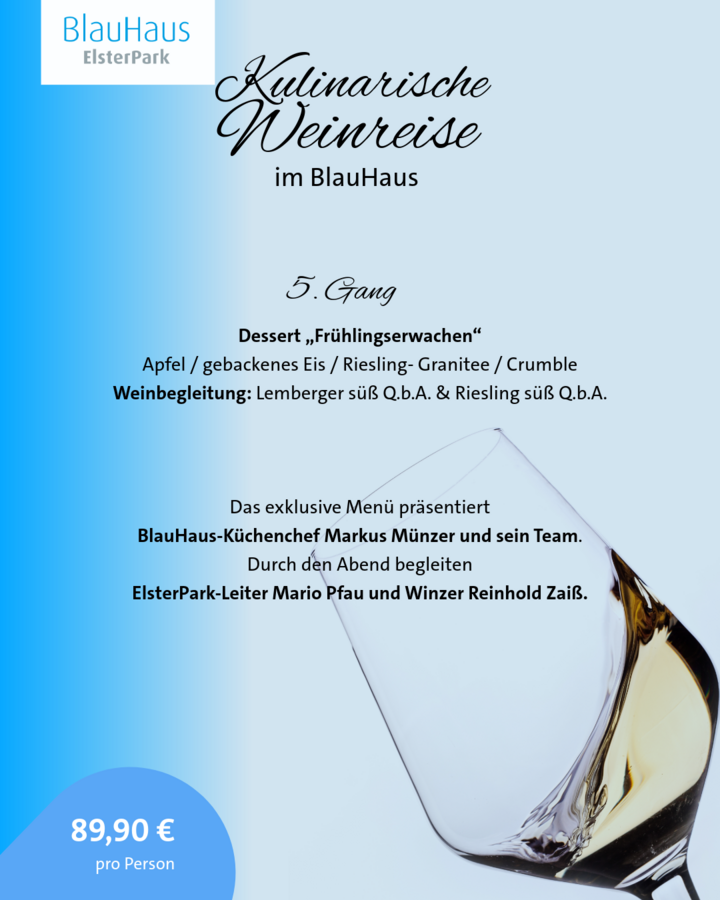 Freut euch auf einen Abend voller Geschmack – begleitet von ElsterPark-Leiter Mario Pfau und Winzer Reinhold Zaiß. Das exklusive Menü stammt von unserem Küchenchef Markus Münzer & Team, die damit garantiert den Frühling auf den Teller bringt. 🌸