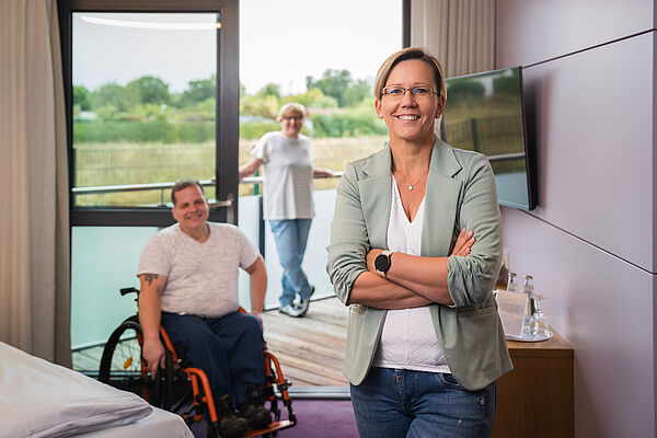 Unsere rollstuhlgerechten Zimmer verfügen über bodengleiche Duschen, Haltegriffe, unterfahrbare Waschbecken, absenkbare Kleiderstangen und verstellbare Pflegebetten. So können Sie Ihren Aufenthalt entspannt und sicher genießen – ganz gleich, ob Sie mit Rollstuhl, Rollator oder mit Begleitperson reisen.