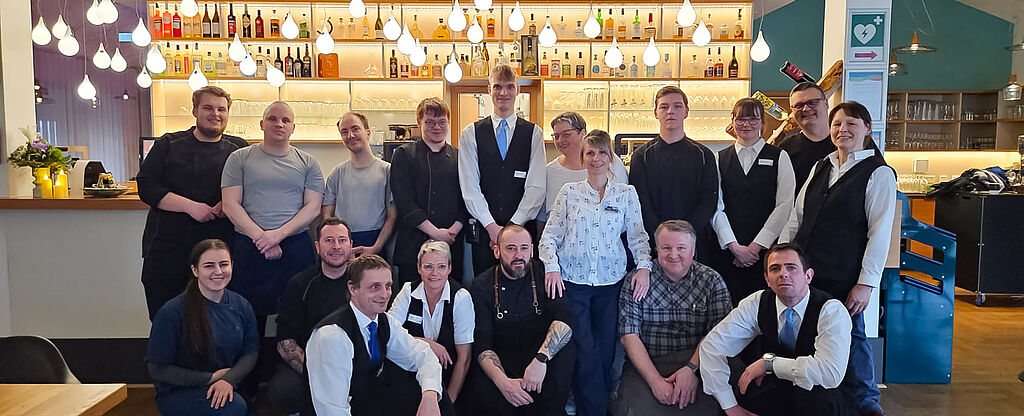 Unter Anleitung von Fachkräften arbeiten hier behinderte Menschen im Service- und Küchenbereich. Besuchen Sie uns im BlauHaus und erleben Sie echte Inklusionund die ganz besonders herzliche Atmosphäre.