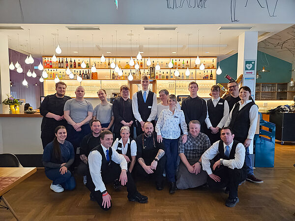 Maik Hofmann-Adamski ist seit November 2020 im Bereich Service im BlauHaus tätig. Man spürt seine "Liebe zum Beruf" sofort, wenn er Gäste im Restaurant herzlich begrüßt. 13 Jahre hat er in Österreich gearbeitet und ist dann in die Heimat Herzberg zurückgekehrt. Er ist für das Serviceteam zuständig und koordiniert hier auch die Aufgaben für die Werkstattbeschäftigten im Team.